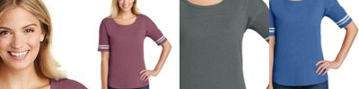 This comfortable tee delivers style fit for a winner. 4.5-ounce, 60/40 ring spun combed cotton/poly, 32 singles Drop shoulder with longer sleeve Distressed printed stripes at sleeve Self-fabric neck Tear-away label Front and back yoke Curved hem Please note: This product is transitioning from woven labels to tear-away labels. Your order may contain a combination of both labels.