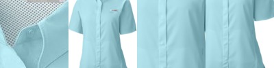 3.9 oz./yd² / 132 gsm, 60% cotton, 40% polyester dobby with wrinkle-free and stain-release performance; Stain-release and true non-iron performance straight from the dryer; Active fit; Patent pucker-free taped seams; Specially fused collar, cuffs and placket for total garment performance; Straight collar with built-in collar stays; Princess seams in front and back for a feminine fit; Fine yarn-count shirting with pealized buttons; Adjustable cuffs with button placket;