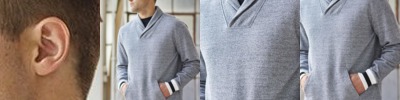 - 1x1 ribbed collar with double-needle coverstitching on front neck