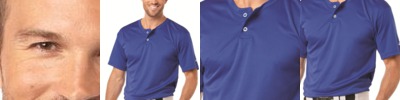 100% polyester pique, 4.1 oz./yd2/140 gsm; Moisture wicking, antimicrobial and UV protection performance; matching flat knit collar;