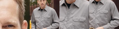 3.4 oz., 55% cotton, 45% polyester; Fine yarn count shirting; True Non-iron performance straight from the dryer; stain release finish; Classic Fit for professional appearance; Patented pucker-free taped seams; Fused collar cuffs and placket; Split back seam with bias cut back yoke; rolled button-down collar; adjustable Comfort Collar for up to an inch of stretch at neck; left-chest pocket; pearlized buttons;