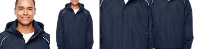 • Raw-edge hood opening, pocket seams, cuffs, waistband, zipper placket and side seams